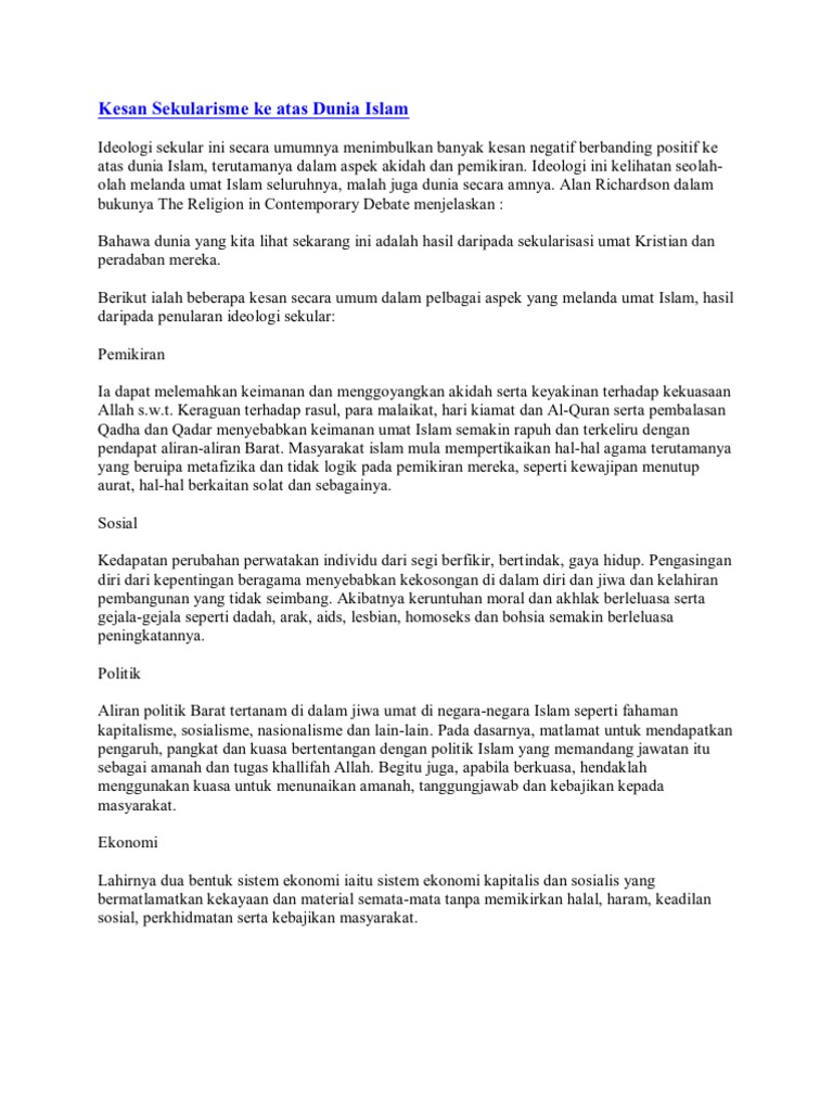 Pdf Pluralisme Dan Kesatuan Agama Mohd Shukri Academia Edu from 0.academia-photos.com Pemikiran liberal juga adalah asas kepada ketamadunan sekular yang muncul kesan daripada bantahan golongan cendekiawan barat terhadap metode berfikir menurut kaedah ini perlu ditangani secara holistik kerana pemikiran beracuan liberal ini mampu menjejaskan metode berfikir umat islam. Sebelum bicara tentang bahaya islam liberal, kita perlu mengetahui apa liberalisme itu sendiri. Apakah kekeliruan umat islam dalam hal ini? Kata ini kembali kepada kata liberty dalam bahasa inggrisnya, atau liberte menurut bahasa perancis, yang bermakna bebas1. Liberalisme menuntut bahwa yang privat (termasuk berpakaian dan pilihan agama) adalah pilihan pribadi seseorang sehingga apakah pelarangan terhadap simbolisme islam dapat memadamkan hasrat fundamentalisme seseorang? Kaum fundamentalis ini bagai kanker dalam umat islam. Liberalisme dan keprogresifan dalam islam melibatkan umat islam yang beragama yang telah mencipta sebuah badan liberal yang memikirkan pemahaman dan amalan islam. Liberalization of thought goes into islam through several methods and approaches.