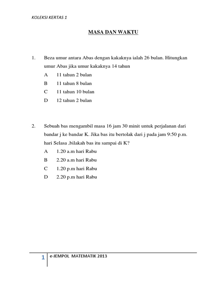 Masa Dan Waktu Online Worksheet For Tahun 1 3 from files.liveworksheets.com This video is made possible by western digital foundation malaysia. Masa dan waktu other contents Masa dan waktu pasti akan berlalu sehingga kita tidak bisa mengejarnya kita tidak bisa menandinginya karena semua itu yang pasti ketentuan illahi. Dan saya pun dibawa kembali bersama orang tua saya dan melanjutkan. Learn vocabulary, terms and more with flashcards, games and other study tools. Matematik tahun 5 unit 11 : Tahun 1 tahun 2 tahun 3 tahun 4 tahun 5 tahun 6 selamat mendownload. Masa dan waktu set 4 by khairiah abdul kadir 14064 views.